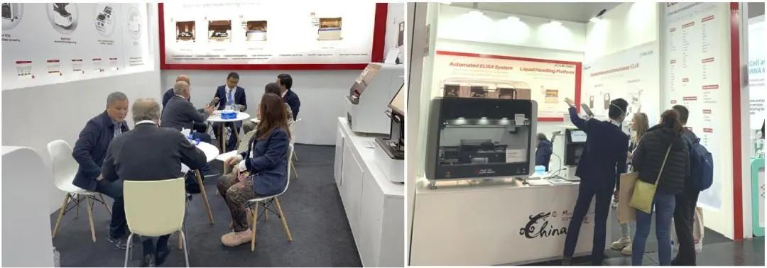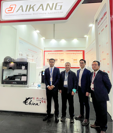 愛康珍惜每一次與國(guó)際合作伙伴面對(duì)面交流的機(jī)會(huì)。本次展會(huì),集團(tuán)董事長(zhǎng)張董率領(lǐng)國(guó)際營(yíng)銷團(tuán)隊(duì)組成參展小分隊(duì)前往杜塞爾多夫,與國(guó)際客戶相約萊茵河畔。不僅帶來了全新推出的單人份化學(xué)發(fā)光免疫分析解決方案CLIA-mate 1200,還有同系列明星產(chǎn)品CLIA-mate Plus、C 900,以及全自動(dòng)血型分析解決方案Aigel 300。