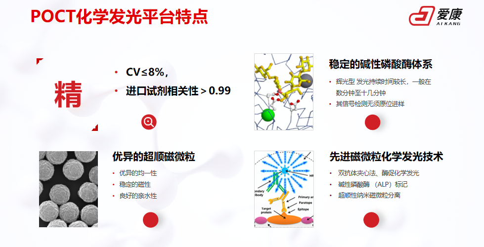 目前,深圳愛康POCT化學(xué)發(fā)光平臺(tái)擁有《北京協(xié)和醫(yī)院成人新型冠狀病毒感染實(shí)用診療建議(2022)》推薦的必檢項(xiàng)目D-二聚體和C反應(yīng)蛋白(CRP),以及推薦檢查項(xiàng)目鐵蛋白、降鈣素原(PCT)、超敏肌鈣蛋白、腦鈉肽、白細(xì)胞介素-6(IL-6)等IVD產(chǎn)品,為成人新型冠狀病毒感染實(shí)用診斷提供快速檢測(cè)。僅需15分鐘出檢測(cè)結(jié)果,為新冠病人的及時(shí)、準(zhǔn)確診斷提供有效依據(jù)。