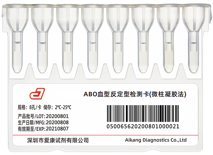 采用微柱凝膠法,8孔卡設(shè)計(jì),適用于ABO血型反定型的檢測(cè)