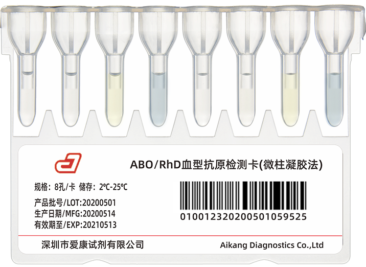 采用微柱凝膠法,8孔卡設(shè)計(jì),適用于進(jìn)行ABO血型正定型及RhD血型抗原的檢測