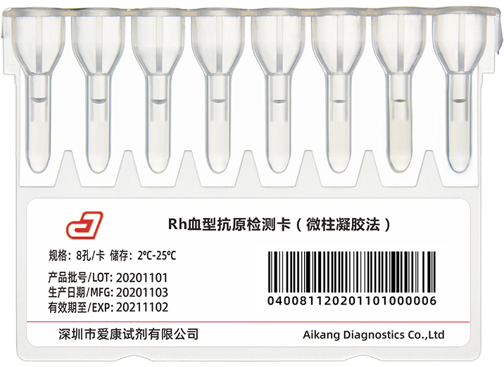 采用微柱凝膠法,8孔卡設計,用于Rh血型系統(tǒng)的C、c、E、e抗原的檢測